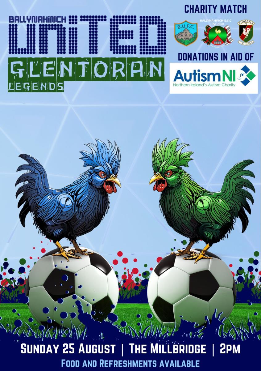 Glentoran Legends travel to Ballynahinch next Sunday (25th August) to face Ballynahinch United in a charity match with all proceeds going to Autism NI.